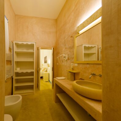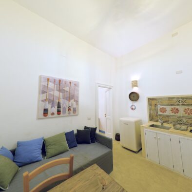La Suite è composta da un ingresso cucina, una camera matrimoniale, un bagno ed un patio retrostante attrezzato. Si trova a piano terra ed è dotata di: 1. Smart TV 40 pollici con collegamento satellitare e NETFLIX; 2. collegamento Internet Wifi gratuito; 3. aria condizionata; 4. frigo-bar; 5. asciugacapelli; 6. Biancheria da letto e da bagno; 7. Materasso e cuscini in lattice.