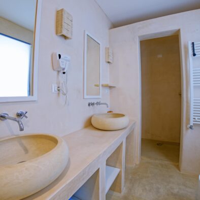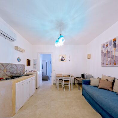 La Suite è composta da un ingresso cucina, una camera matrimoniale, un bagno e un terrazzo. Si trova a piano primo ed è dotata di: 1. Smart TV 40 pollici con collegamento satellitare e NETFLIX; 2. collegamento Internet Wifi gratuito; 3. aria condizionata; 4. frigo-bar; 5. asciugacapelli; 6. Biancheria da letto e da bagno; 7. Materasso e cuscini in lattice.